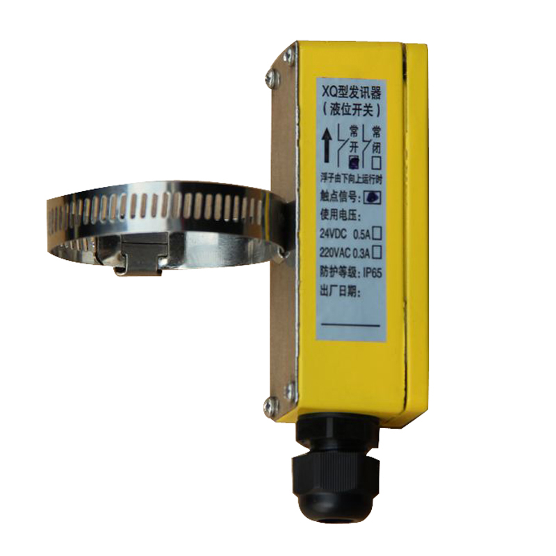 該液位控制開關以捆綁的形式固定在UHZ型磁翻板液位計的外側,使其處于液位計同一磁場系統中,當磁性浮子隨液位上下移動時,對應液位位置的干簧管受浮子內磁場的作用吸合,通過轉換模塊將變化的信號轉換成無源開關信號輸出,若是BJB-25型或GBJB-25型還能將引信號保持,直到返回感應信號到達時才釋放,因此可方便地與各類儀表配套使用,從而達到控制及報警的目的。每個磁翻板液位計配多個報警開關。